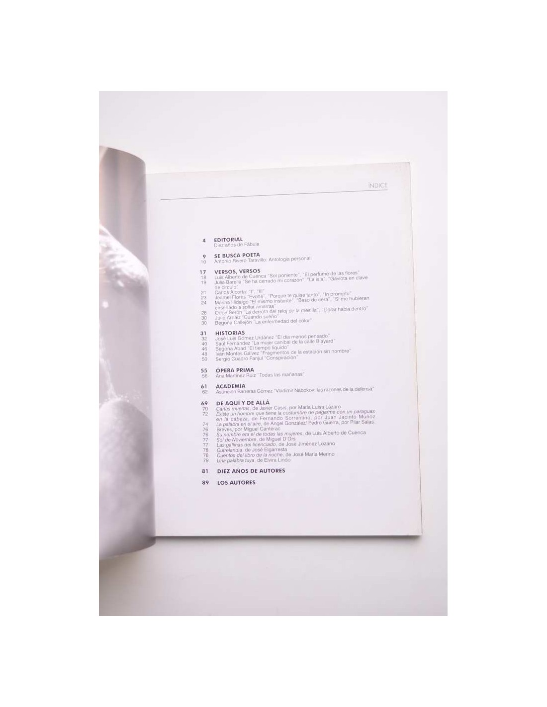 - Sumario entre otros: Se busc a poeta / Antonio RIvero Taravillo; Versos, versos: Luis Alberto de Cuenca, Julia Barella, Carlos Alcorta; Diez años de Fábula