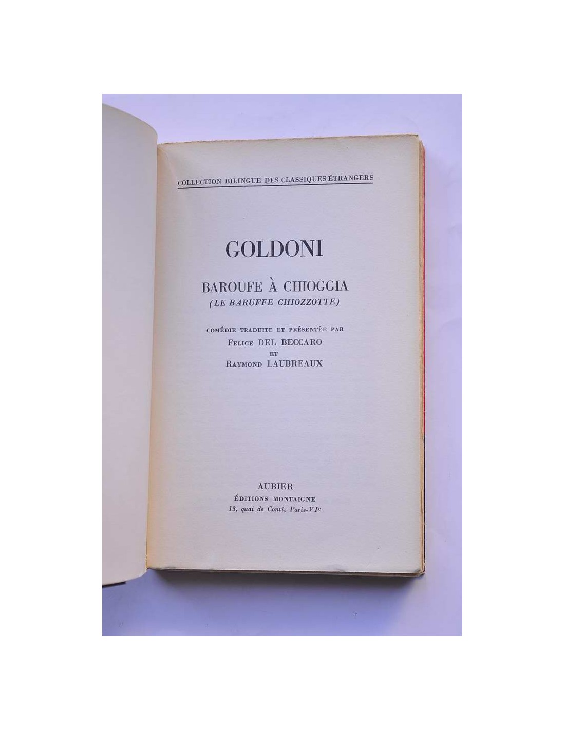 - Comédie traduit et présenté par Felice del Beccaro et Raymond Laubreaux