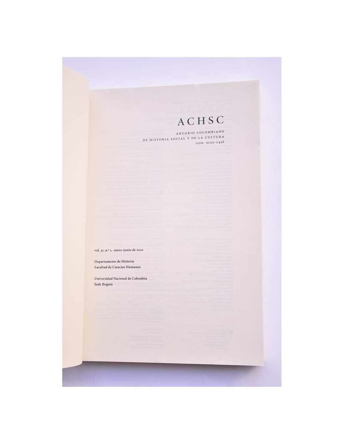 Anuario colombiano de historia social y de la cultura. Vol. 27, nº 1 (enero - junio 2010) contiene: