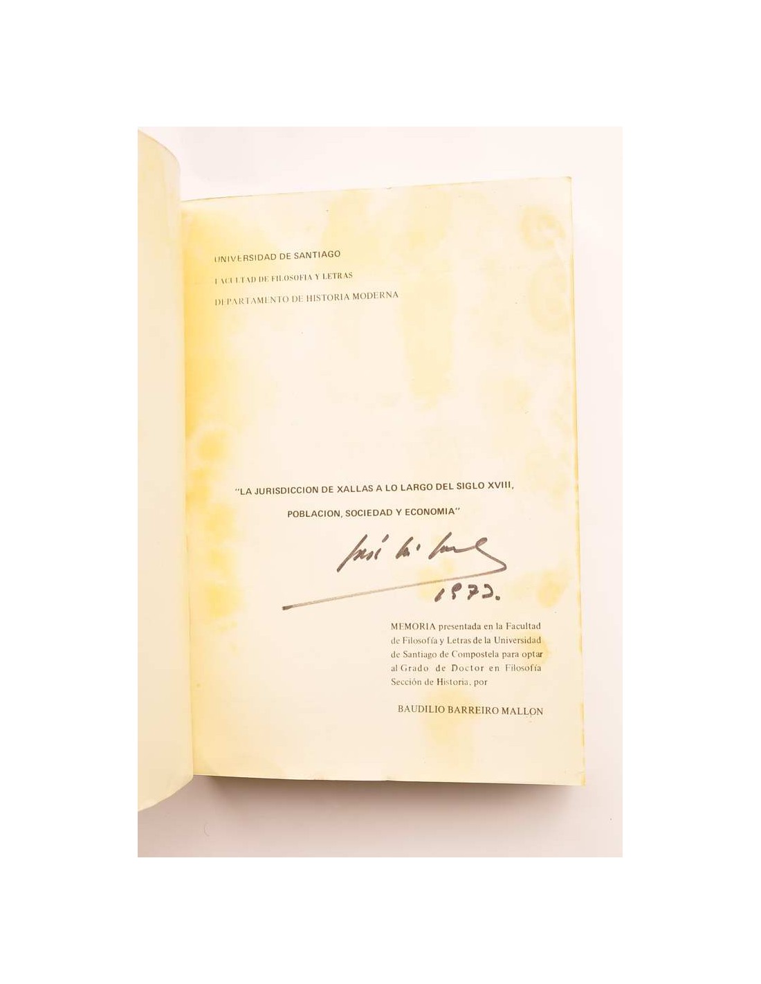 - Memoria presentada en la Facultad de Filosofía y Letras de la Universidad de Santiago de Compostela para optar al grado de Doctor en Filosofía, sección Historia