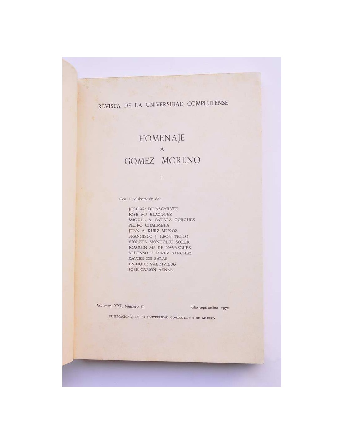 - Publicaciones de la Universidad Complutense de Madrid. Vol. XXI, nº 83, julio-septiembre 1972